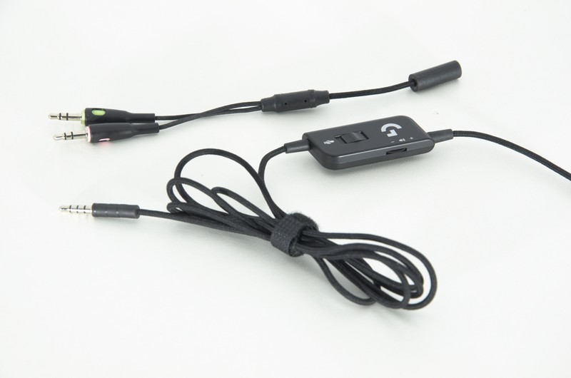 Кабель досить довгий, має оплетення. На ньому розташований блок із регулятором гучності та вимикачем мікрофона. Також є дві липучки для зручного складання дротів. Завдяки спеціальному перехіднику можна легко підключати гарнітуру до комп’ютерів як з комбінованим аудіовиходом, так і з окремими.