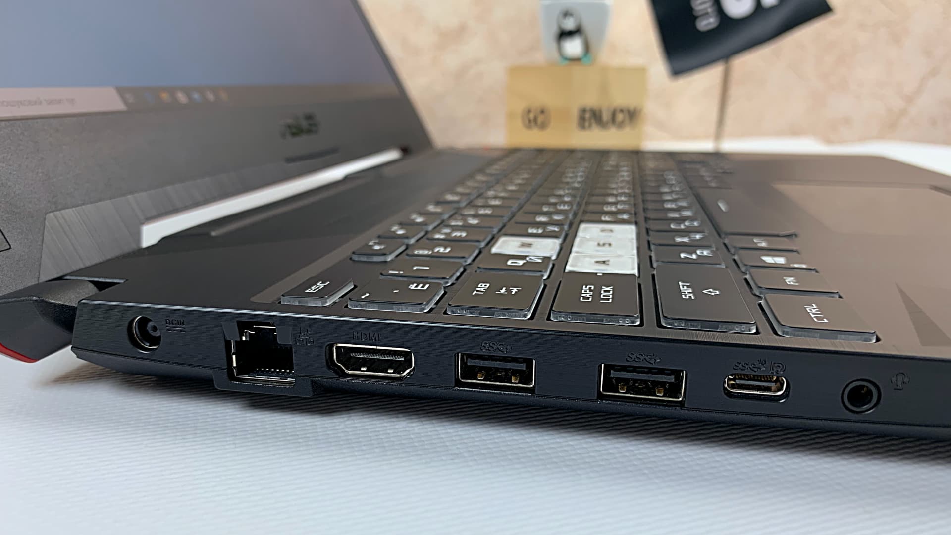 ASUS TUF Gaming A15 FA506 II оснащений двома динаміками, які розміщені на дні ноутбука з обох сторін. А от 3.5 мм аудіороз’єм розмістили з лівого боку. За словами компанії, в ASUS TUF Gaming A15 реалізовано технологію DTS:X Ultra, яка формує віртуальний 7.1-канальний просторовий звук при використанні звичайних стереонавушників. Звук, що з динаміків, що з навушнкиків, непоганий. Він гучний, достатньо чіткий, однак не настілький якісний, як у випадку з ASUS ZenBook Pro Duo UX581.