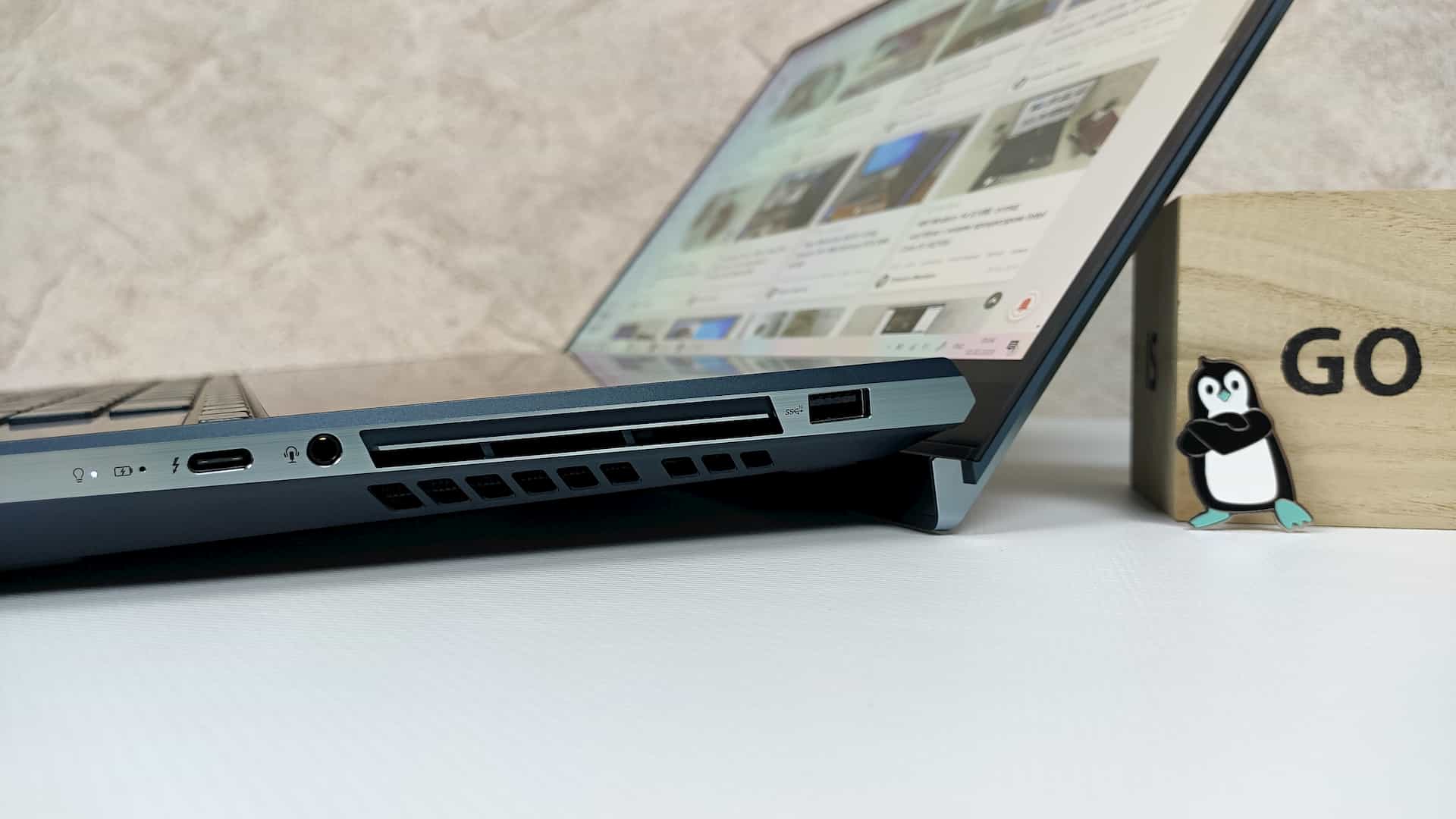 При відкритті ноутбука, в нього є спеціальна конструкція, яка припіднімає його задню частину. Таким чином головний екран опускається до головної конструкції, що створює ефект тонких рамок. Також, при піднятті конструції, під корпусом стає більше простору, щоб повітря краще попадало під низ для циркуляції всієї системи охолодження. А от видув повітря відбувається з обох боків ноутбука. Не скажу, що мені таке рішення сподобалося, адже при дуже серйозних задачах гаряче повітря видуває прямо в сторону розміщення руки з мишкою. Якщо зимою, ще можна погрітися, то літом таке рішення може бути дискомфортним. Однак, навіть попри це, такий підхід дав можливість ASUS ZenBook Pro Duo шикарно справлятися з охолодженням при будь-яких важких задачах. Шум при навантаженні, звісна річ, присутній, але він цілком прийнятний і ненастільки гучний, як це буває в ігрових ноутбуках.