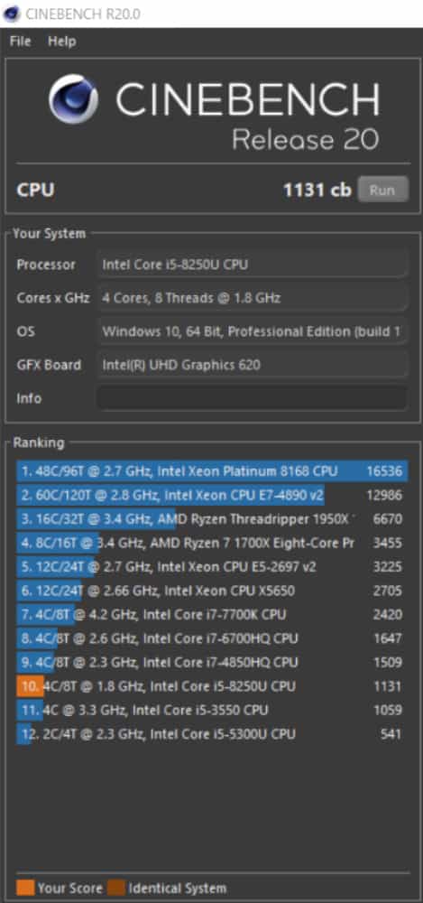 Lenovo ThinkPad X280 має процесор Intel Core i5-8250U з 4 ядрами та 8 потоками. Тактова частота становить 1.6 ҐГц, а при Turbo Boost має становити 3.4 ҐГц, в теорії, хоча на практиці цього нема через не дуже сильну систему охолодження, яка чомусь не справляється з цим. Також в ноутбуці є 8 ГБ оперативної пам’яті DDR4 з частотою 2400 МГц, яка розпаяна на материнській платі (замінити її не вийде) і SSD диск на 256 ГБ з не дуже високою швидкістю запису та читання.