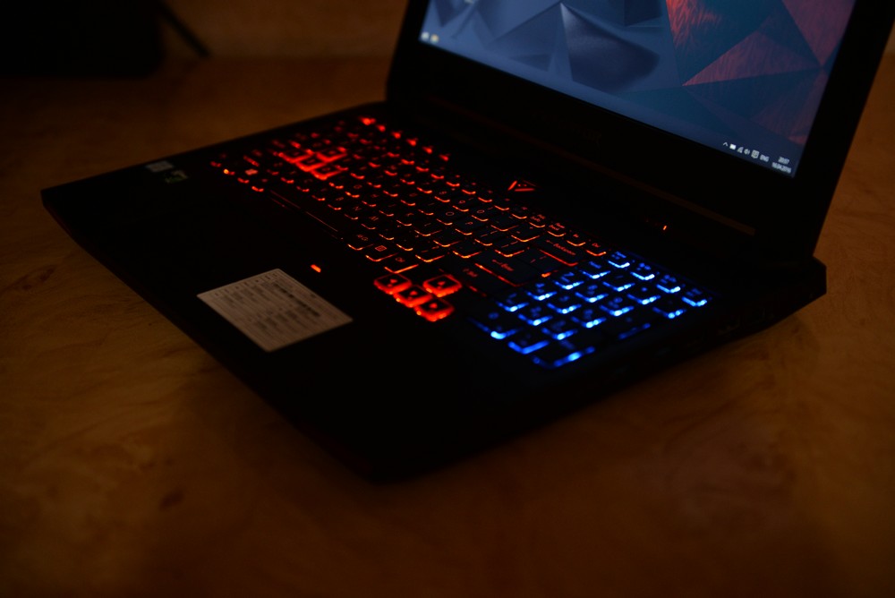 Перше, що кидається в осі – підсвічування, червоне та синє на клавіатурі і лише червона на кришці екрану. В темряві ноутбук світиться як металургійний цех. На перший погляд це виглядає круто і по геймерський, але далі задумаєшся, як воно постійно працювати із таким агресивним світлом. Але програвши із ноутбуком пару тижнів, я до нього звик і не звертав на світло уваги.