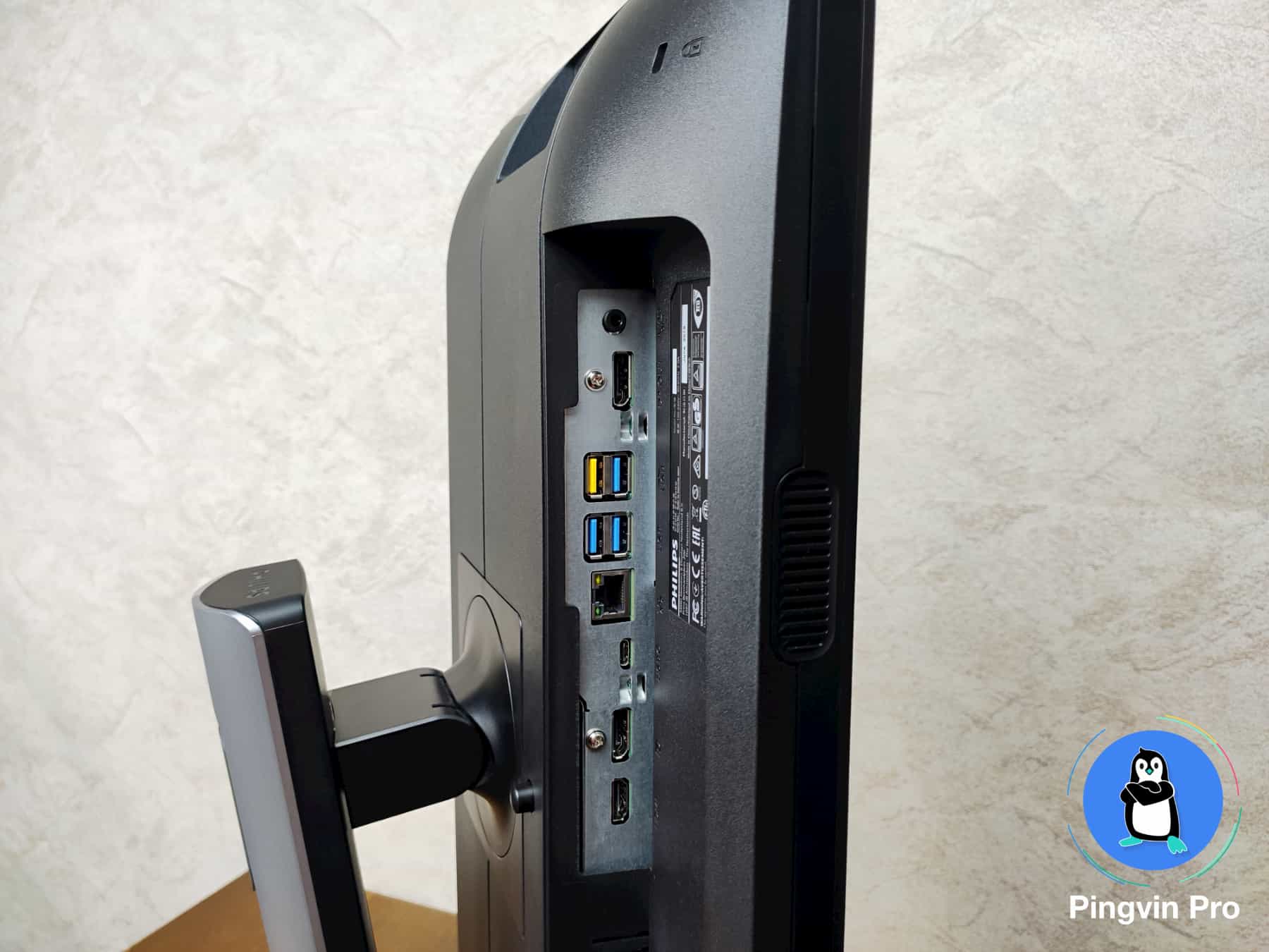 Окрім стандартних підключень через кабелі DisplayPort (з можливістю підключення додаткового монітора) та HDMI, монітор до комп’ютера можна підключати через кабель з USB Type-C на USB Type-C або USB Type-A (завдяки комплектному перехіднику). При такому підключенні через USB Type-C, ви не лише зможете відображати певний контент на моніторі Philips, а й зможете одночасно заряджати ноутбук при потужності до 65 Вт. При умові, що сам ноутбук має таку фізичну підтримку та підтримку в операційній системі. Ба більше, при такій роботі можна буде використовувати хаб монітора. Тобто усе, що буде підключено до монітора через 4 роз’єми USB Type-A з технологією USB 3.2. А це можуть бути флешки, HDD/SSD диски, клавіатура, мишка тощо. Також присутня підтримка дротового підключення до інтернету через RJ45 (Ethernet LAN) із швидкістю передачі даних до 1 Гбіт. В такому випадку, використання роз’єму нового покоління USB Type-C – це дійсно круто! Особливо, якщо у вас є ноутбук з цим роз’ємом.