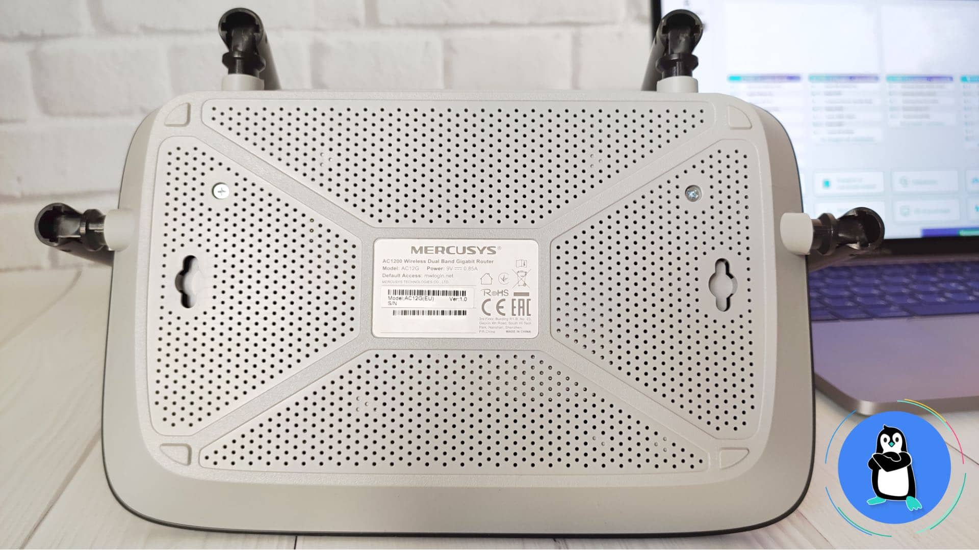 Роутер має чотири антени, які можна розвернути в будь-яку сторону для охоплення більшої площі передачі Wi-Fi сигналу. Також на Mercusys AC12G є один Гігабітний порт WAN, три Гігабітні порти LAN, роз’єм для живлення від електрики та кнопка для перезавантаження або збиття роутера до заводських налаштувань. Спереду є стандартні чотири діоди світло-зеленого відтінку, які показують стан роботи роутера, а саме підключення до електрики, включені режими роздачі Wi-Fi сигналу по 2.4/5 ҐГц, підключення до інтернету через кабель та дротове підключення до ПК, ігрової консолі або іншої техніки.