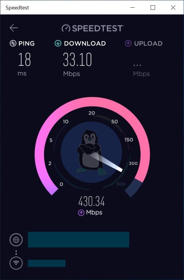 При тестуванні, швидкість інтернету через USB-адаптер в одній кімнаті з роутером при завантаженні сягала понад 30 Мбіт/с, а при відвантаженні понад 35 Мбіт/с. Це все при тому, що мій інтернет-провайдер надає мені швидкість до 30 Мбіт/с. Припускаю, що це був якийсь тимчасовий «подарунковий» глюк від мого провайдера. Однак, мені вдалося зафіксувати швидкість відвантаження понад 430 Мбіт/с. Це лише чудовий приклад того, що Mercusys MW300UH цілком може забезпечувати високу швидкість інтернета по Wi-Fi для вашого комп’ютера.