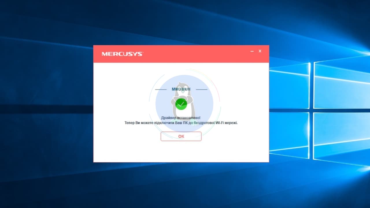 Для того, щоб підключити Mercusys MW300UH до Windows комп’ютера, потрібно просто під’єднати його через USB-кабель з роз’ємами з Micro-USB на USB Type-A. Потім, за посиланням з офіційного веб-сайту компанії, потрібно завантажити спеціальну утиліту, яка налаштує USB-адаптер. Далі, після завантаження файлу, треба зробити наступне: