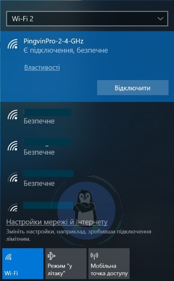 Якщо у вас ноутбук, то має з’явитися Wi-Fi 2, як на знятку. Якщо у вас ПК, тоді має відображатися іконка Wi-Fi, яка раніше не була доступна. Потім, відповідно від того чи іншого варіанту пристрою, обираємо Wi-Fi 2 (або просто Wi-Fi, якщо на ПК) і обираємо точку інтернет-мережі та вводимо пароль. І це все. Якщо ви все зробили правильно, то у вас має запрацювати інтернет.