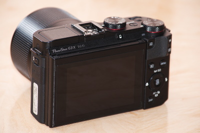 Екран, на відміну від G7 X, повертається вже не тільки вгору, а й вниз — я думаю, в наступній моделі прийдуть до поширеної конструкції, що дозволяє відкидатися і вбік (яку Canon і так ставить на деякі суперзуми та дзеркалки). Дисплей достатньо яскравий і нарікань не викликає. Серед іншого — присутні гістограма та електронний горизонт.