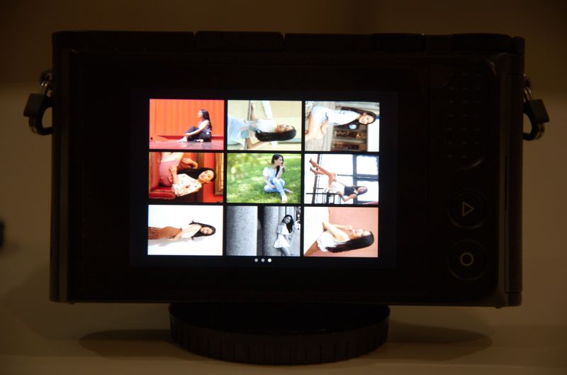 На правому екрані, залежно від обраного режиму зйомки, знаходяться або фільтри, або схематичні підказки по композиції для портретної зйомки у вигляді шаблонів, по яких фотограф буде виставляти модель. Окрім стандартних схем можна завантажити більше із сайту виробника та записати в пам’ять камери за допомогою смартфона.