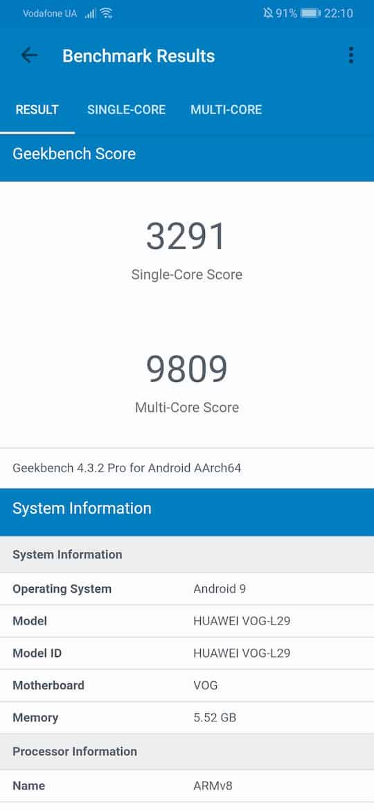 На цей момент, Huawei P30 Pro має прошивку EMUI 9.1.0, що на базі операційної системи Android 9 Pie. Система працює дуже швидко та стабільно. За весь час використання ніяких проблем я не помічав, як і не помічав проблем із перезавантаженням застосунків. Конкретно, моя тестова модель мала модифікацію із 6 Гб ОЗП та 128 Гб ПЗП.