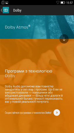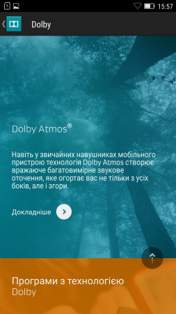 Одна з фішок “мудрофона”, на яку звертає багато уваги виробник, – це звук. Але він тут не простий, а “Dolby-нутий”. Принаймні, наклейка саме з таким написом красується на коробці, самому телефоні й в меню смартфона. На практиці ж виявилося, що він… ну, не найліпший – це точно. Звісно, як для смартфонів середнього цінового сегменту, він радує своїм опрацьованим басом і гарною гучністю. Але дотягнути до таких мастодонтів еталонного звуку, як HTC, LG G4 чи Moto X Style – зась.