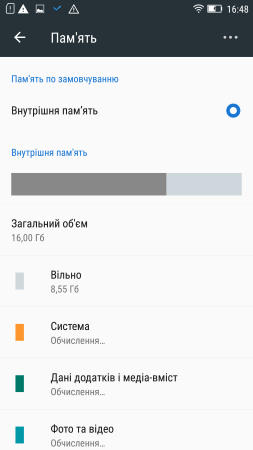 | Пам’ять | 2 Гб ОЗП, 16 Гб вбудованої пам’яті, microSD слот |