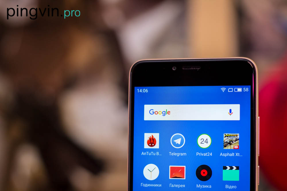 Працює слухавка на базі ОС Android 6.0, на яку китайці натягнули свою фірмову YunOS 5.1.1 з FlyMe 5.2. А для тих кому по цимбалам що воно таке, скажу що працює дуже швидко, і не останню роль у цьому відіграють одразу 3 гектари оперативки. По інтерфейсу претензій жодних, хіба що локалізація дуже далека від ідеалу. Наприклад у камері, режим «пост-фокус»-у, обізвали «світополем», «професійний, або ж ручний режим» – «Керівництво», і так само ручне фокусування. Крім того і в налаштуваннях смартфона де-не-де проскакують або взагалі не перекладені з англійської, шматки тексту, або ж перекладені, але якось кострубато. З Російською локалізацією проблем менше, але все одно присутні.