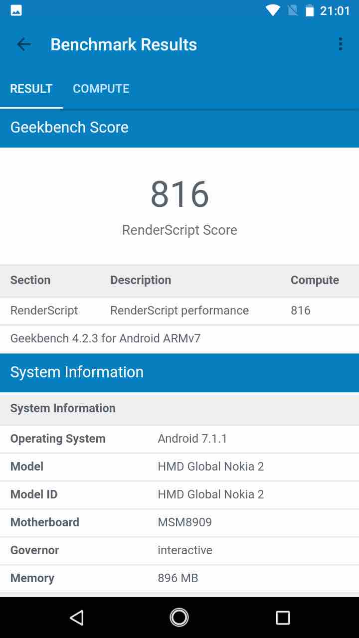 В середині Nokia 2 дуже бюджетний процесор від Qualcomm – Snapdragon 212 з максимальною частотою 1.3 ҐГц і графічним ядром Adreno 304. Також лишень 1 Гб оперативної пам’яті та 8 Гб вбудованої. Тож варто розуміти, що цей пристрій не розрахований для ігор. Але його цілком вистачить для соціальних мереж, месенджерів, YouTube тощо.