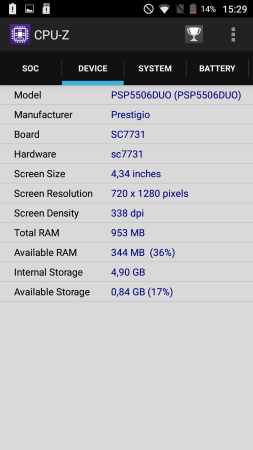 За продуктивність Prestigio Grace Q5 відповідає 4-ядерна система Spreadtrum SC7731 з максимальною робочою частотою у 1.3 ГГц. Під кришкою ядра Cortex A7 і графіка Mali-400 MP2. Його потужності з головою вистачає для виконання повсякденних завдань.