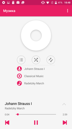 Відтворювати музику можна як через стандартний додаток “Музика”, так і через “Google Play Музику”. Обидві програми наділені широким спектром функцій, але принаймні мають убудовані еквалайзери для підлаштовування звуку під себе. Є стандартний FM-приймач, але він працює тільки зі вставленими в пристрій навушниками, які використовуються як антенна.
