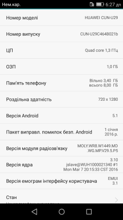 Далі залізо, і це вже третя родзинка у цьому пиріжку, що вже більше ніж кладуть у справжні пиріжки з родзинками. Цей смартфон є двох версій, та що в нас, зі старенький процесором MediaTek MT 6582, в якому 4 ядра Cortex-A7, що працюють на частоті 1.3 Ггц. Та LTE версія, з MT 6735P, який дещо продуктивніший при тих же 4-ох ядрах Cortex-A7. При можливості, звісно, беріть другий варіант, а ми розповімо про перший, слабший. Відео ядро теж далеко не нове, Mali-400 MP2, але найбільшим каменем спіткання для юного геймера стане об’єм пам’яті, як оперативки, всього 1 гектар, так і постійної – 8. От тільки чому я назвав залізо родзинкою? А тому що робота смартфона досить гарно оптимізована. І працює він дуже швидко як для своїх характеристик. Операційна система з’їдає близько 700-от метрів оперативки, і на тому мізерному залишку, телефон примудряється досить швидко реагувати на дії користувача та навіть не завжди гальмувати при перемиканні між додатками.