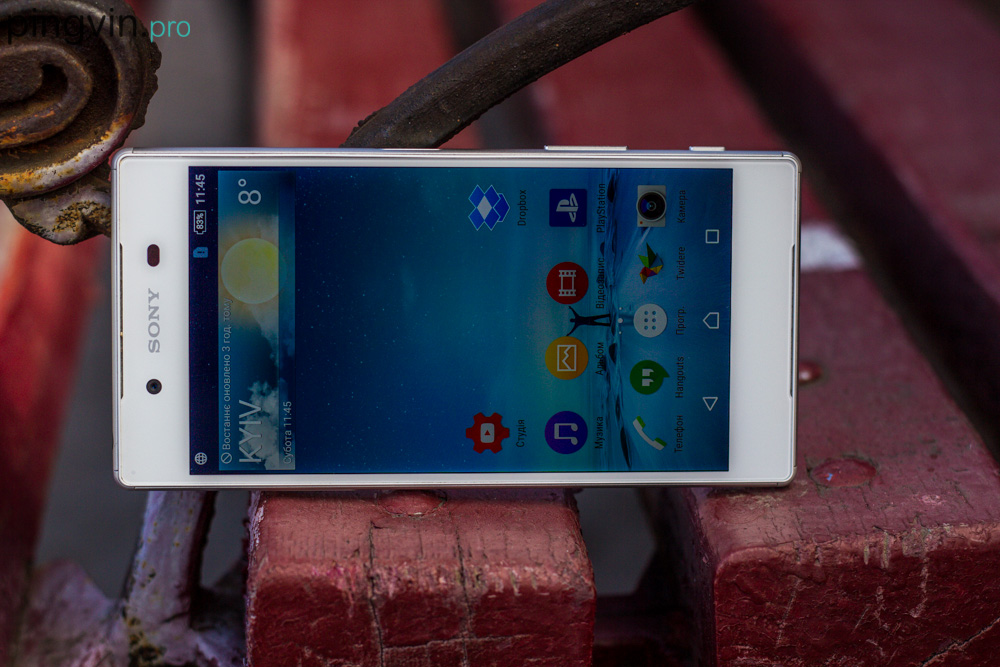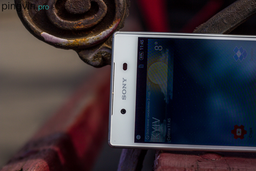 Буквально кілька слів про звук. У Xperia Z5 два стерео динаміка, які розташовані по феншую, на передній панелі. Дуже сподобалась, малопомітність отворів, та порівняна висока якість звуку, особливо враховуючи водонепроникність корпусу. Так звук дещо глухий, і звісно не дотягує до рівня Lenovo Vibe X3, але смартфон все ж здатен порадувати вухо невибагливого меломана. У налаштуваннях знайшлося місце для звуку, в тому числі спеціально під навушники. Втім назвати флагман у якого таких можливостей немає буде важко, тому нічого особливого в цьому немає.