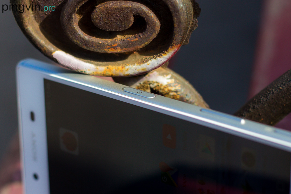 Ну і двохпозиційна кнопка запуску камери. Розміщена в самому низу правої грані. До неї як не дивно претензій немає взагалі, але варто розуміти що призначена вона в основному для зйомки мокрим телефоном, і виключно в горизонтальній орієнтації. Вертикально це робити практично не можливо.