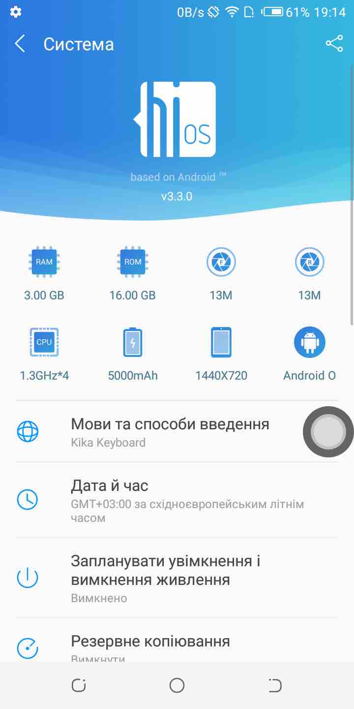 | Операційна система | HiOS 3.3.0 на основі Android 8.1 |