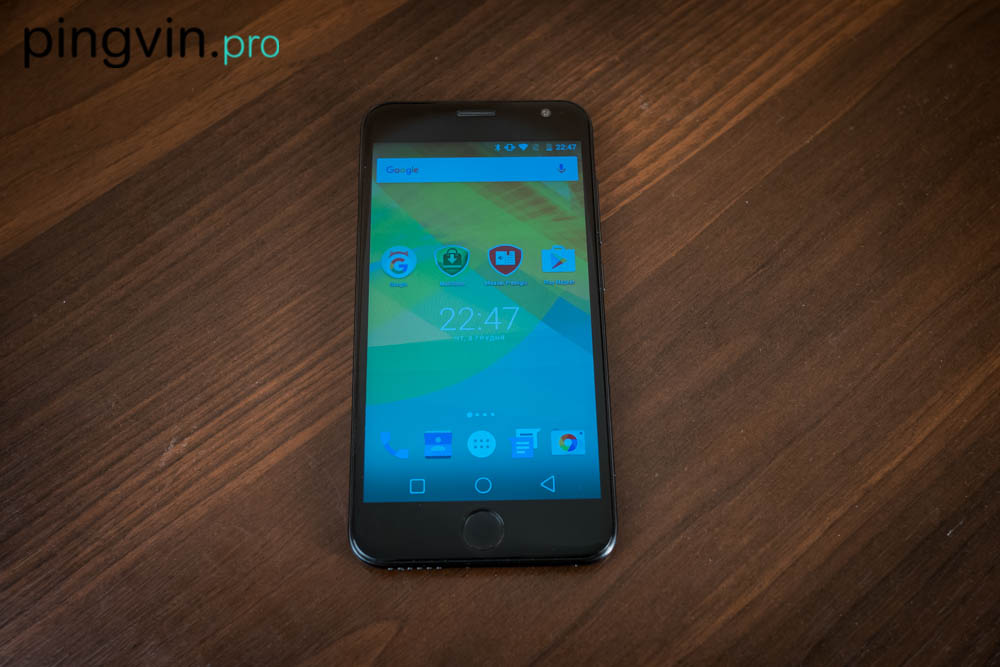 p1030277Ну і звичайно круглий сканер відбитків пальців під 5-ти дюймовим дисплеєм. Забігаючи на перед скажу, що працює він дуже навіть не погано. Я за звичкою ставлю один і той же палець два-три рази, це дозволяє будь-якому смартфону безпомилково визначати що саме я тримаю його в руках. Тим більше смартфон може запам’ятати відразу 5 папілярних малюнків, чого більш ніж достатньо. Ви напевно вже помітили, що тут ситуація схожа з Moto Z, тобто присутня кнопка-сканер відбитків, а також стандартні наекранні кнопки управління смартфоном.
