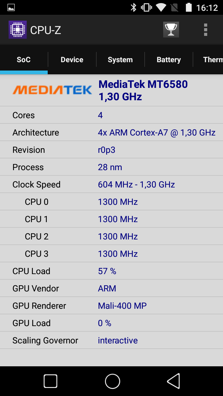 Процесор 4-ядерний MediaTek MT6580А, на 1,3 ГГц, графічний прискорювач Mali-400 MP1