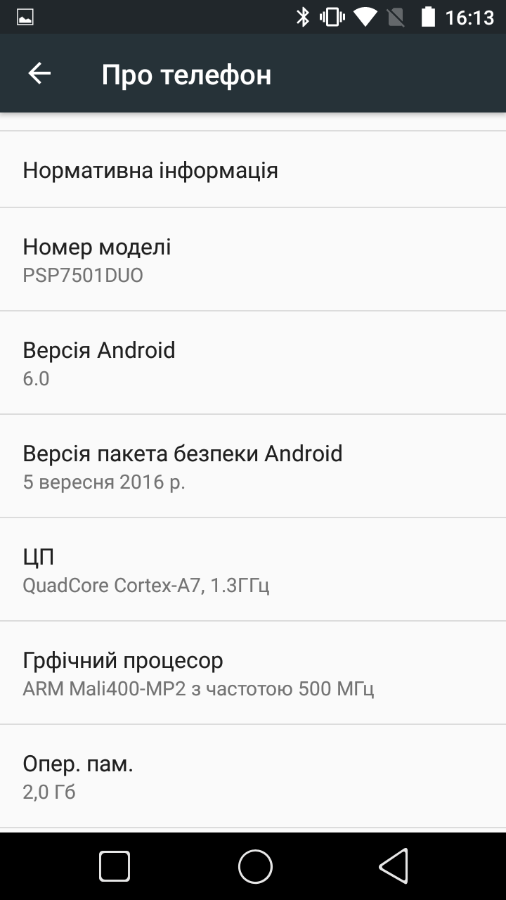Пам’ять 2 Гб ОЗП, 16 Гб вбудованої пам’яті, microSD слот