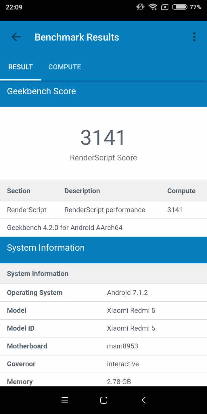 В Meizu M6S – графіка Mali-G71 MP1, яка працює на частоті до 1200 МГц, і її потужність складає 40 Gflops. В Redmi 5 – Qualcomm Adreno 506, що на частоті до 600 МГц (110 Gflops). Отож, обидві графіки далеко не ігрові, однак в Redmi є значно більші переваги. І мало чи не в три рази, хоча дивно, що в тесті Geekbench цього не виражено.