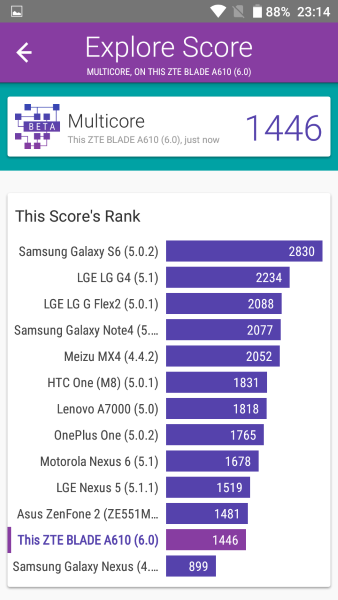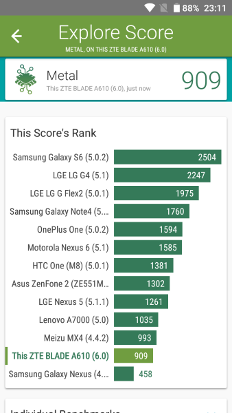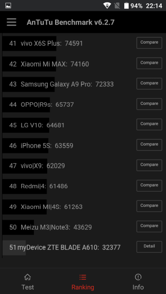 Показники бенчмарків далеко НЕ захмарні, але все одно здатні задовольнити невибагливого користувача. Запасу продуктивності вистачає для виконання більшості повсякденних завдань. Навіть якщо навантажити смартфон додатками, він працює досить швидко, а перемикання між додатками не змушують довго чекати. Хоча без підгальмовувань в роботі не обходиться. Проблем з нагріванням не виявлено.