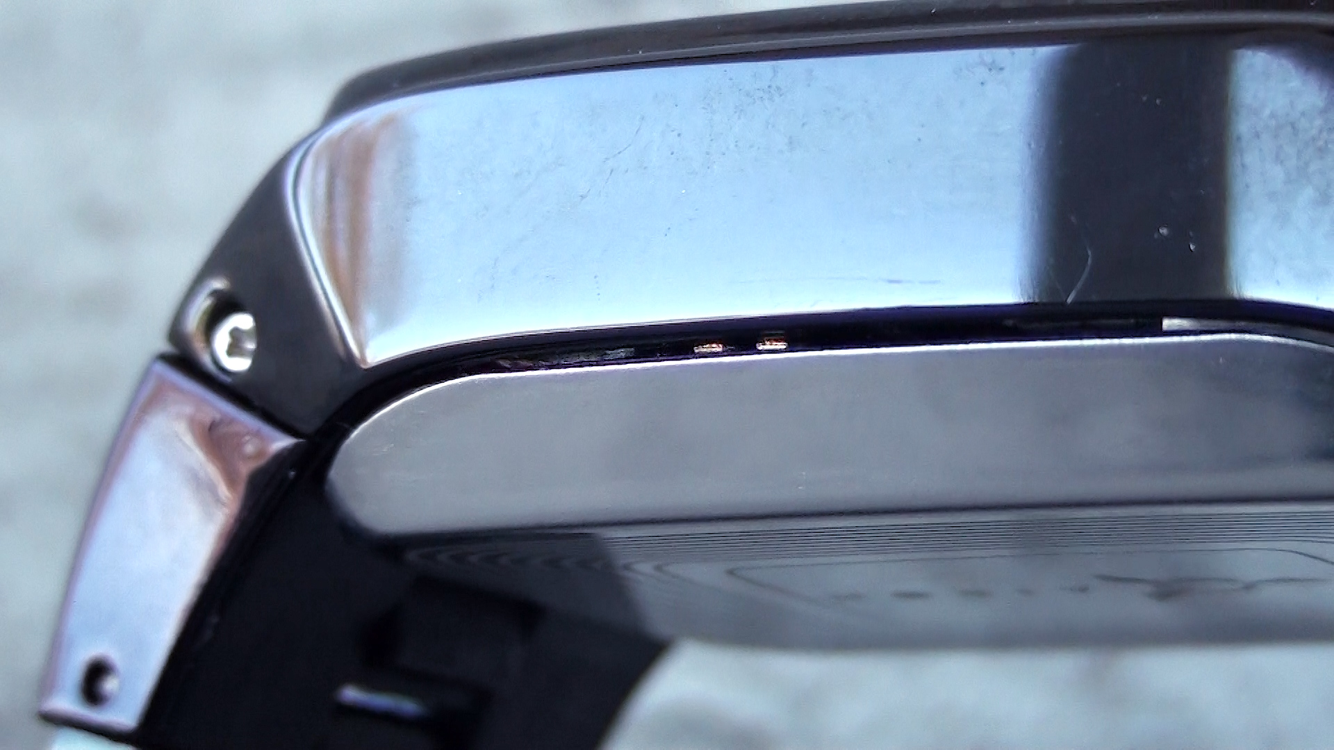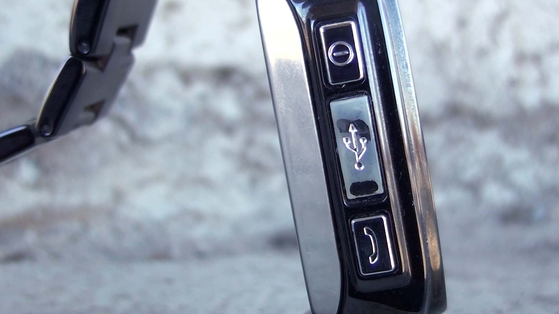 Synced Sequence Replaced.00_00_55_26.Still001Знайомство з чим чудом почин ається з захвату. І просто не знаєш що сказати. Годинникофон, виконаний у класичному стриманому дизайні, з потужним металевим браслетом, та сенсорним  дисплеєм з діагоналлю 1.6 дюйма. З фізичних елементів управління тут всього дві кнопки. Верхня виконує функції повернення на головний екран, та відбій дзвінка. А нижня меню, чи прийом дзвінка. Якість збірки в цілому на висоті, втім дещо збентежила щілина між батарейкою та корпусом годинника, у якій видніються контакти живлення. Тож як ви розумієте про вологозахист тут і мова не йде. Я б вам порадив навіть під час невеличкого дощу попіклуватись про сухість девайса.
