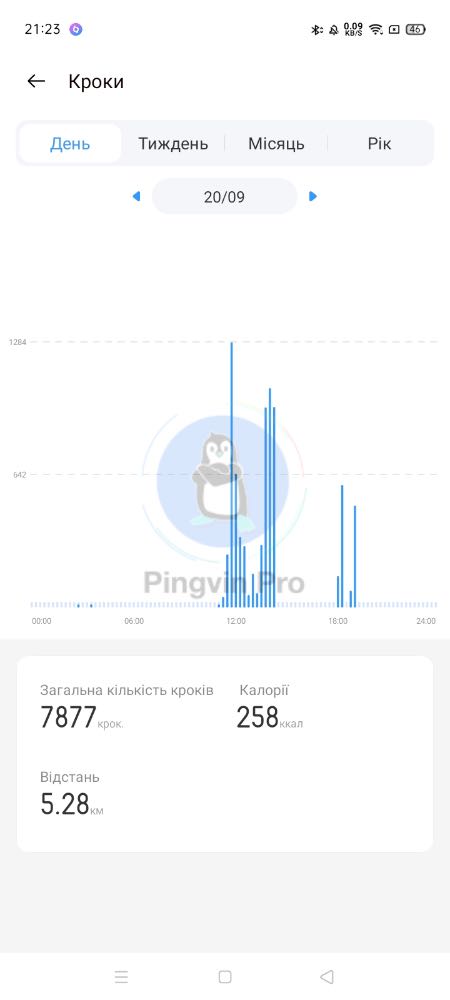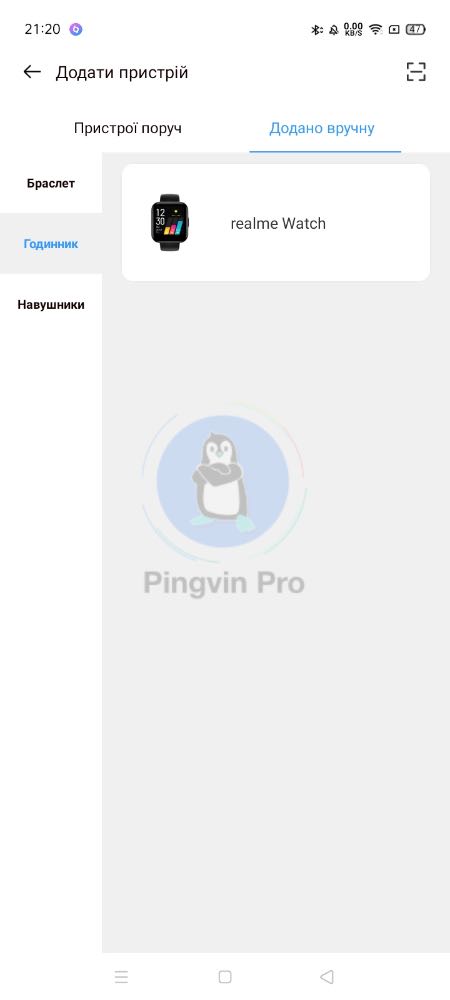 Додати можна фітнес-браслет realme Band, годинник або навушники. Додавши браслет/годинник, Ви отримуєте інформацію про кроки, сон, серцебиття, кисень у крові та тренування. Вся інформація подається графіками, які потім сортуються по тижнях, місяцях та роках. Ви також встановлюєте тут ціль на кроки, нагадування про воду, встати і розім’ятися, якщо довго сидите тощо.