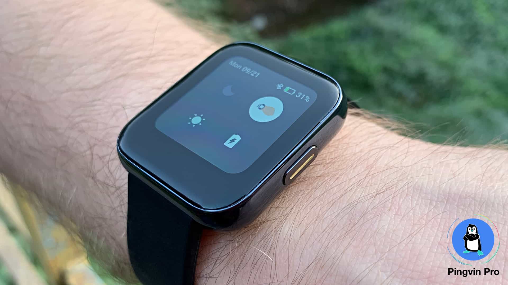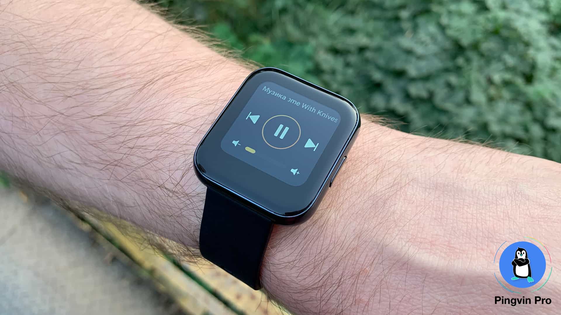 Годинник має квадратний корпус, а такий форм-фактор дуже часто порівнюють з Apple Watch. Назвати його копією чи підробкою Apple дуже важко. Цей годинник має свій власний стиль – приємний оку мінімалізм, класичний чорний колір, глянцева рама, яка обрамляє заокруглене на кутах скло. Збоку фізична багатофункціональна кнопка із золотистою рискою рівно посередині. Під екраном, на нижній рамці, є ледь помітний напис realme – побачити його можна під певним кутом.
