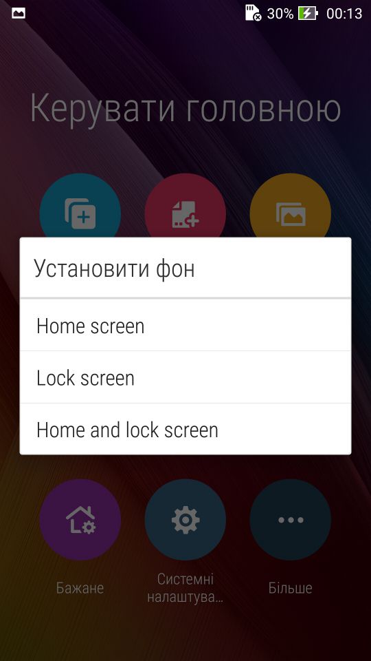 Тепер що до загальних налаштувань лаунчера. Викликати меню можна свайпнувши догори в будь якому місці на робочому столі. Або ж довгим тапом на пустому місці. Тут по порядку.