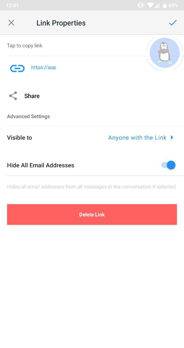 Наступна функція цього поштового клієнта, яка мені сподобалась, це можливість відправити електронний лист через посилання, яке можна відкрити у браузері. Така штука може знадобитися в тому випадку, коли потрібно показати вміст листа багатьом людям. І замість того, щоб надсилати цей електронний лист на різні імейли, що займає час, ви просто створюєте посилання і відправляєте його потрібним людям, які його відкриють у браузері свого пристрою.