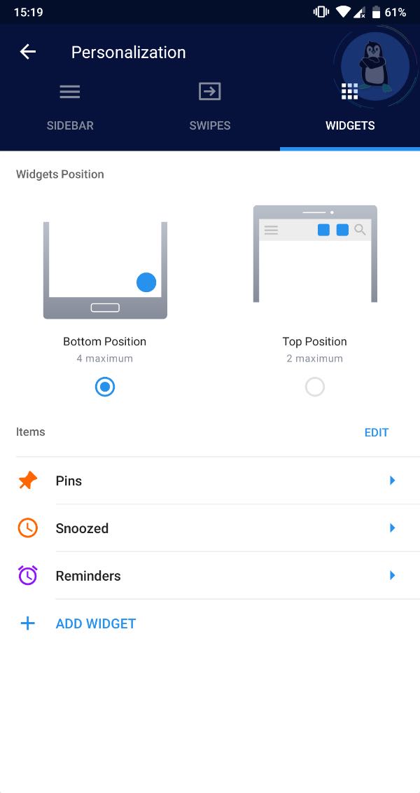 Дуже зручно, коли від самого початку, компанією було задумано швидкий доступ, який тут реалізований віджетом. Його можна використовувати двома різними способами. Або закріпленими кнопками в самій горі справа (до 2 кнопок максимум), або круглою кнопкою внизу справа, натиснувши на яку можна отримати доступ до різних функцій (до 4 кнопок максимум). Ці функції є швидким доступом до різних папок програми. Скажімо, доступ до загальної папки з листами, доступ до архіву, спаму, чернеток, листів, до яких ви надали доступ тощо.