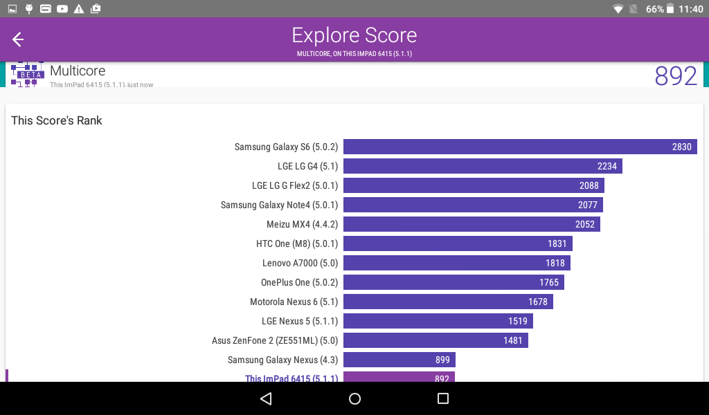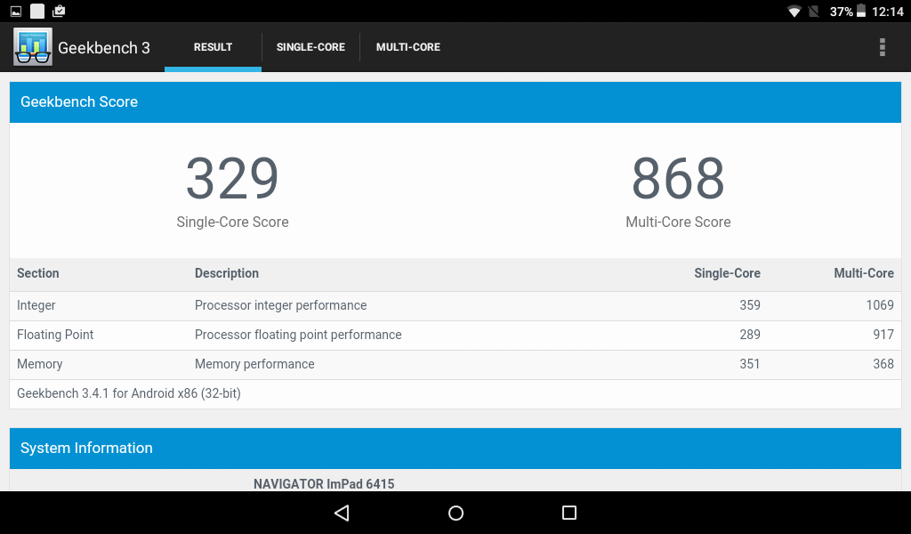 Серцем ImPAD 6415 виступає Intel Atom x3-C3230RK, що працює на максимальній тактовій частоті у 1,2 ГГц. Пам’ять розподілили наступним чином: 1 Гб оперативної і 8 Гб вбудованої, з яких вам доступно близько 700 Мб та 6 Гб після увімкнення апарату відповідно.