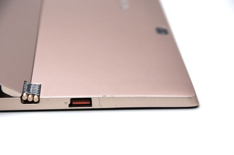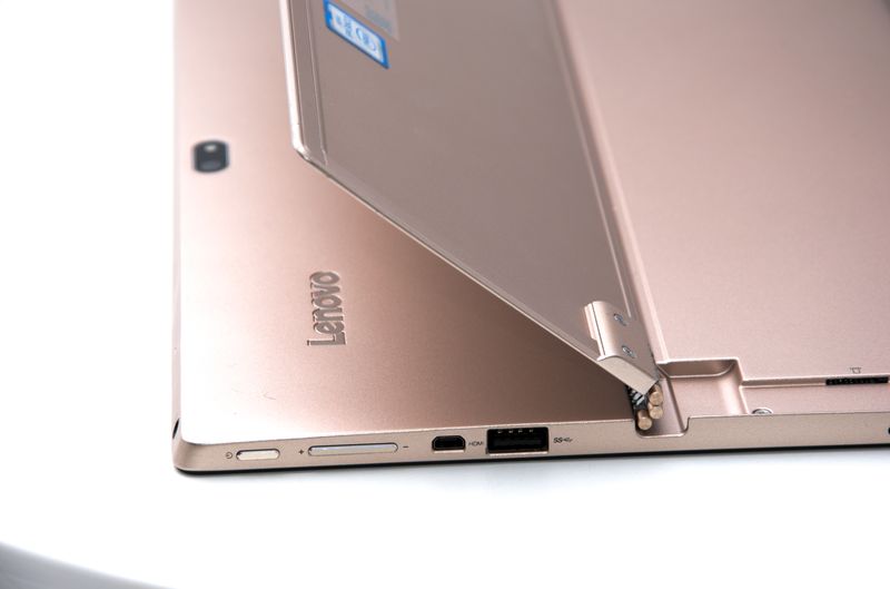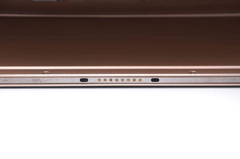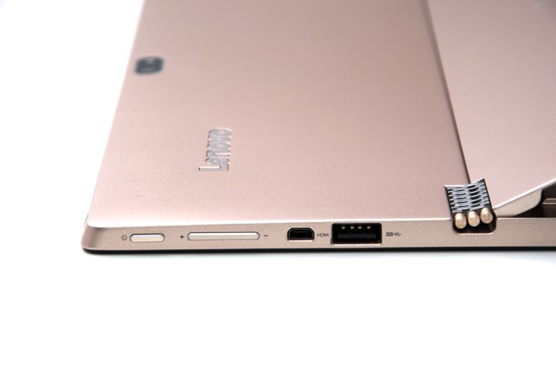 Lenovo MiiX 700-12 оснащено двома портами USB, із яких один використовується для живлення комп’ютера. Там спеціальний роз’єм із двома додатковими контактами, що ми вже бачили в Yoga 700-14. Крім цього є micro HDMI та аудіовихід, розташований на верхній грані.