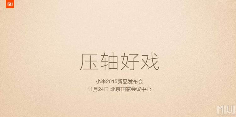 Компанія Xiaomi невпинно радує своїх шанувальників оригінальними пристроями, останніми з яких стали фітнес-трекер Mi Band 1S, 60-дюймовий смарт-ТВ Mi TV 3, компактний резервний акумулятор Mi Power Bank ємністю 20000 мА*год, смартфон Xiaomi Mi 4c, бездротова акустика Mi Bluetooth Speaker. Попри солідну кількість анонсованих за останні півроку новинок, керівництво китайської компанії має намір презентувати світовій громадськості ще кілька моделей електроніки. І, судячи з запрошення, стилізованого під смартфон, про новинки Xiaomi ми дізнаємося вже 24 листопада цього року.
