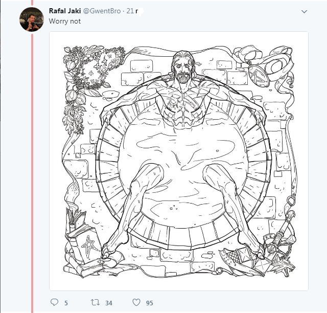 Що цікаво, один зі співробітників компанії опублікував на своїй обліковці у твіттері зображення Ґеральта в бані та закликав не хвилюватися за цей малюнок, адже він обов’язково потрапить до розмальовки.
