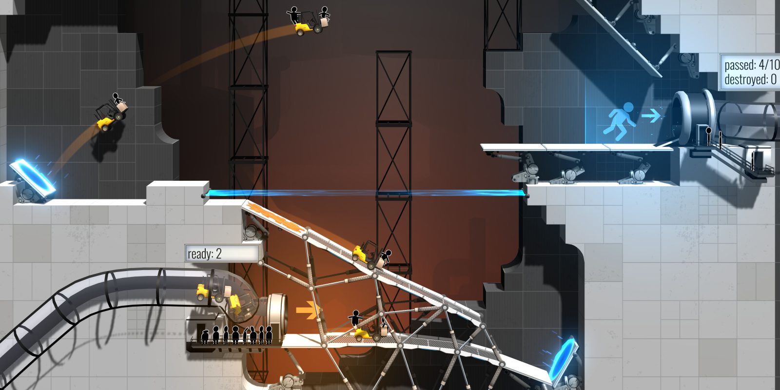 Спочатку потрібно просто будувати мости між двома кінцями платформи, потім підвісні трампліни, захисні перекриття та навіть справжні Американські гірки! І це все не будуть визначені грою схеми, а вам самому доведеться щоразу вигадувати свої методи, як у старі добрі часи. Звісно, тієї креативності при проходженні рівнів, що в оригінальних «Порталах», тут уже не буде, але, враховуючи, що гру робила не Valve, усе доволі непогано та, як було відзначено на початку, гідно продовження серії.