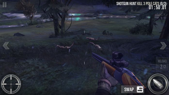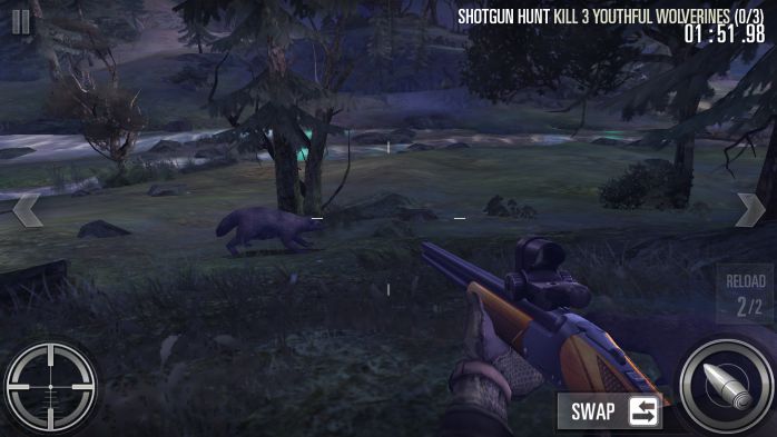 Тепер давайте на кінець то когось завалимо. Обираємо зброю та тиснемо полювати. Перед початком ми отримуємо завдання, що саме потрібно зробити. І виконуємо його. Під час полювання можна змінювати зброю, втім робити цього не варто. Звісно є кнопки прицілу, та пострілу. Крім того є кнопка перезарядки, що корисно при стрільбі з автоматичної зброї. Переміщатись можна за допомогою стрілочок по обидва боки екрану. Ну і по суті все. За вдало виконану місію отримуємо відповідну винагороду. Ну по суті це все. Стріляємо, отримуємо винагороду, модернізуємо зброю, стріляємо знову, прокачуємо зброю. За кожен раунд ми витрачаємо енергію, яка поповнюється з часом, або ж за реальні гроші.