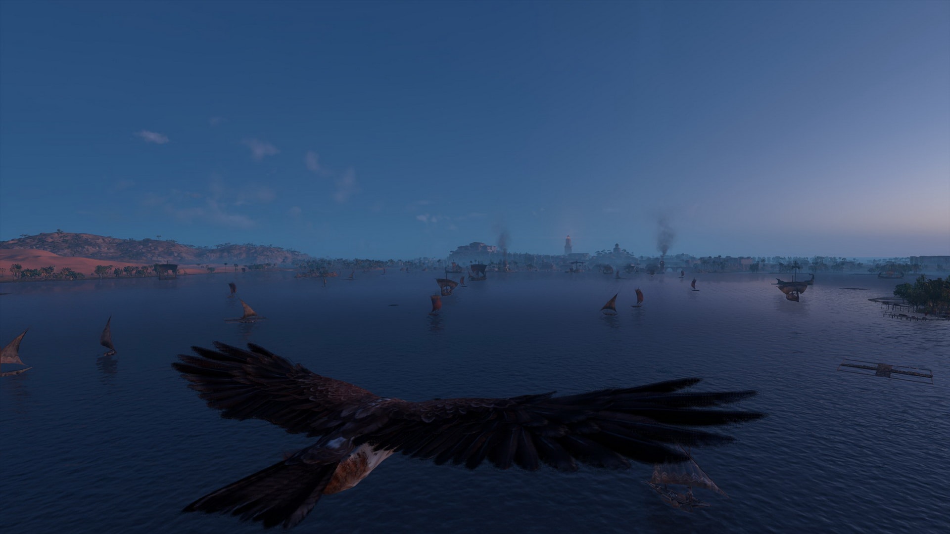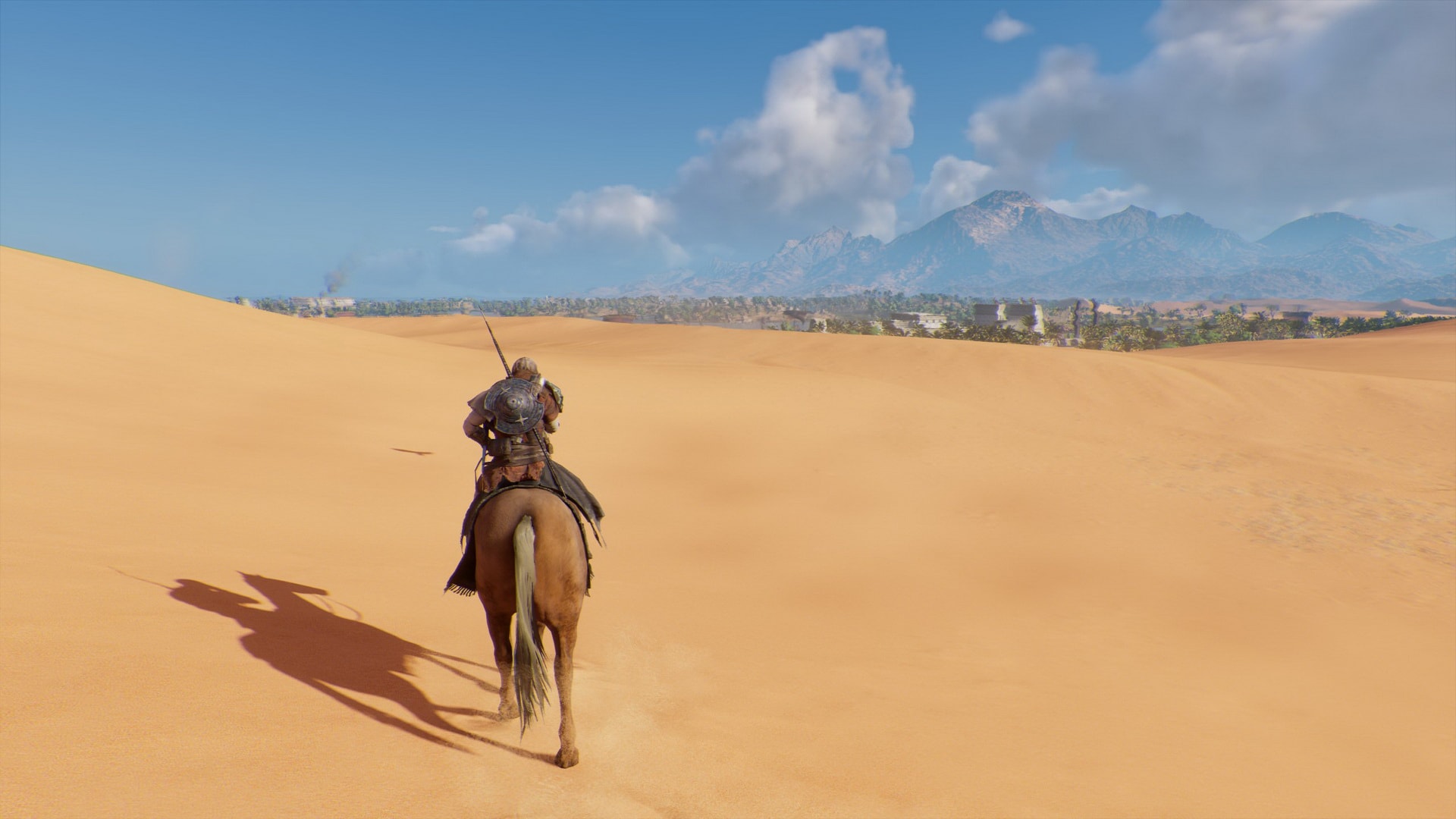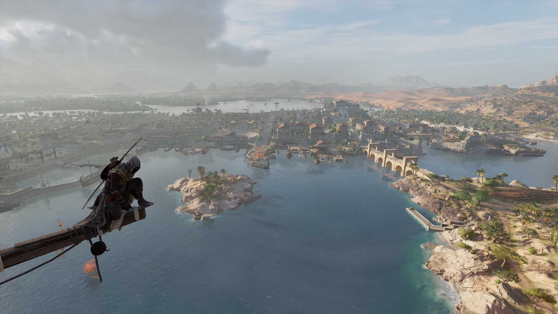 Досі я розповідав про елементи, які розробникам вдалося реалізувати добре, та не ідеально. Настала черга поговорити про те, завдяки чому я сів проходити цю гру знову одразу ж після фінальних титрів, а саме — її світ. Віртуальний Єгипет у виконанні Ubisoft виглядає приголомшливо: безкраї гарячі пустелі, величні піраміди, скелясті гори, затишні оази, великі міста, маленькі містечка — усе це виглядає до біса гарно й щоразу приводить до неконтрольованого відвисання щелепи від нестримного естетичного задоволення. Цей ефект спричинений безліччю дрібничок, якими розробники збагатили світ гри. Ось декілька з них: у гарячих місцинах об’єкти вдалині починають «пливти» від спеки; птахи, що відпочивають у водоймах, один за одним здіймаються вгору, відчувши небезпеку; якщо довго перебувати в пустелі, то герой почне бачити міражі: йому ввижатимуться вогняні кущі, примарні постаті, дощ із сарани та інші марева; ніпи мають свій розпорядок дня, чим вдало симулюють живий світ; знайшовши мертвого побратима, бандити чи солдати спершу спробують знайти Баєка, а з часом, збагнувши, що небезпека минула, почнуть виносити тіла за межі табору. І таких дрібниць у грі хоч греблю гати. Що ще дуже вразило, то це підводний світ. Побий мене грім, якщо я у будь-якій іншій грі отримував стільки задоволення від пірнання й пошуку скарбів у затоплених кораблях чи древніх руїнах, які з плином часу опинилися під водою.