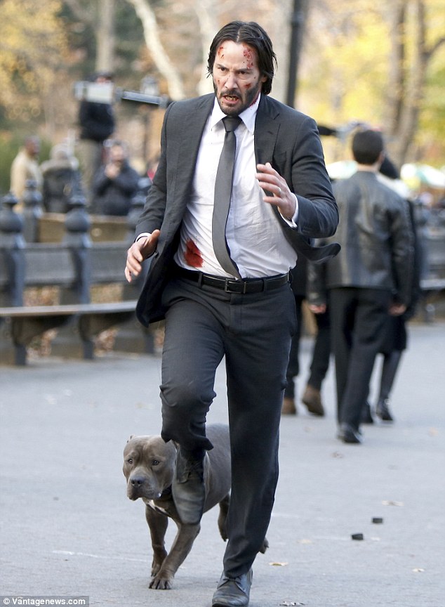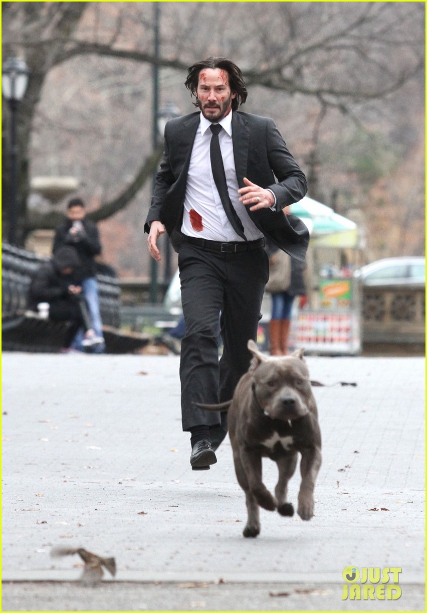 - 51933931 A beat-up and bloody Keanu Reeves can be seen doing some intense running scenes with his pitbull costar in Manhattan’s Central Park for ‘John Wick 2’ on December 21st, 2015. Later he shot another scene exiting a train station and making a call from a public pay phone. Keanu is filming the last day of the New York Unit as they get ready for the holidays and continue with the filming after New Years where production will be moving the action to Italy. A beat-up and bloody Keanu Reeves can be seen doing some intense running scenes with his pitbull costar in Manhattan’s Central Park for ‘John Wick 2’ on December 21st, 2015. Later he shot another scene exiting a train station and making a call from a public pay phone. Keanu is filming the last day of the New York Unit as they get ready for the holidays and continue with the filming after New Years where production will be moving the action to Italy. FameFlynet, Inc – Beverly Hills, CA, USA – +1 (310) 505-9876